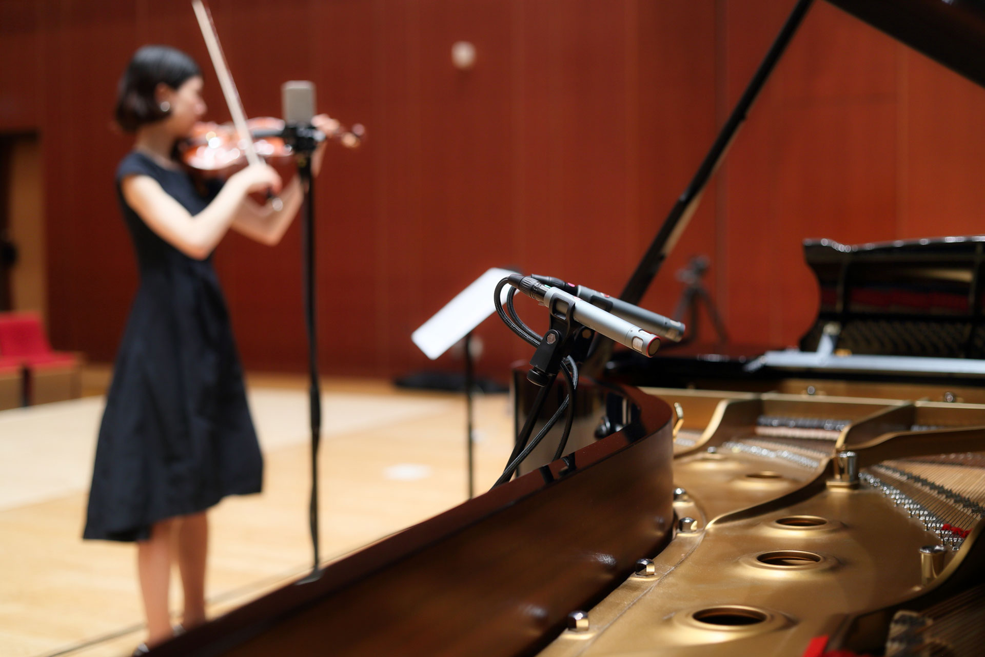 Bei Aufnahmen mit Austrian Audio-Mikrofonen kommen selbst die Reibungsgeräusche und Geräusche von Streichinstrumenten, die in den Umgebungsgeräuschen und Mikrofonartefakten von Live-Auftritten oder stark abgestimmten Mikrofonen untergehen würden, mit einer reichen Präsenz zum Vorschein. Sie fangen das Gefühl des Live-Sounds, der auf Sie zukommt, zusammen mit dem Nachhall des Saals wunderbar ein. Als ich die OC818-Aufnahme zum ersten Mal hörte, konnte ich nicht anders als auszurufen: „Das Instrument hat sich verändert!“ Die schiere Menge an Informationen und das Gefühl der Atmosphäre waren so beeindruckend. Ich war zunächst erstaunt über die überwältigende Klangdichte, bei der selbst die Reibungsgeräusche und der Anschlag der linken Hand akribisch wiedergegeben wurden, und es veranlasste mich, meine eigene Spieltechnik und meinen Stil neu zu bewerten. Die Aufnahmen mit Austrian Audio fühlten sich an wie ein Training, um das Mikrofon besser klingen zu lassen, und ich begann, das Mikrofon als ein Instrument an sich zu betrachten.