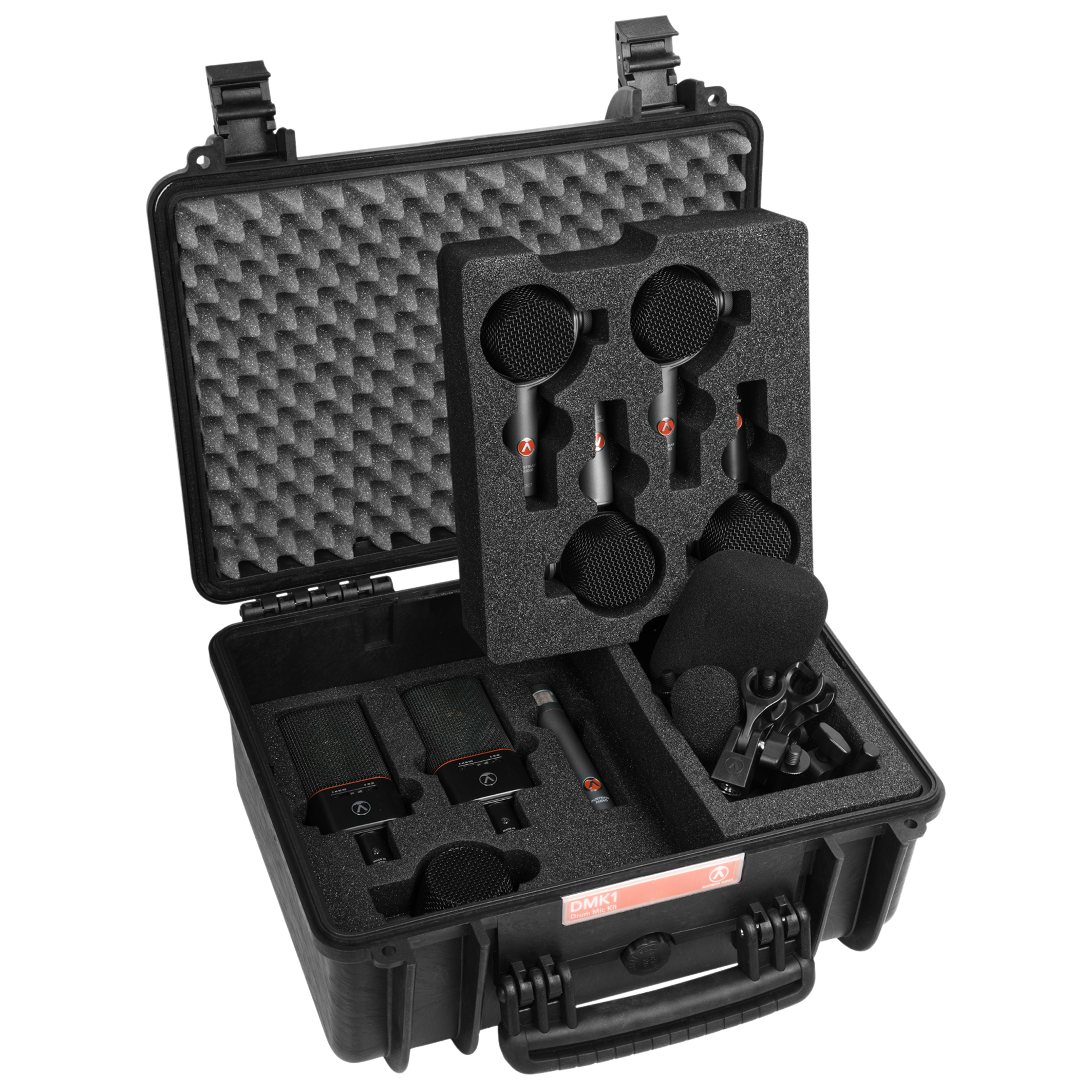 Das DMK1 erschließt das volle Potenzial der Schlagzeugmikrofon-Produktpalette von Austrian Audio. Acht handgefertigte Mikrofone, Präzisionshalterungen und ein roadtaugliches, wasserdichtes Gehäuse sorgen für die Aufnahme des gesamten Kits – von rasiermesserscharfen Transienten bis zur donnernden Kraft des OC-B6
